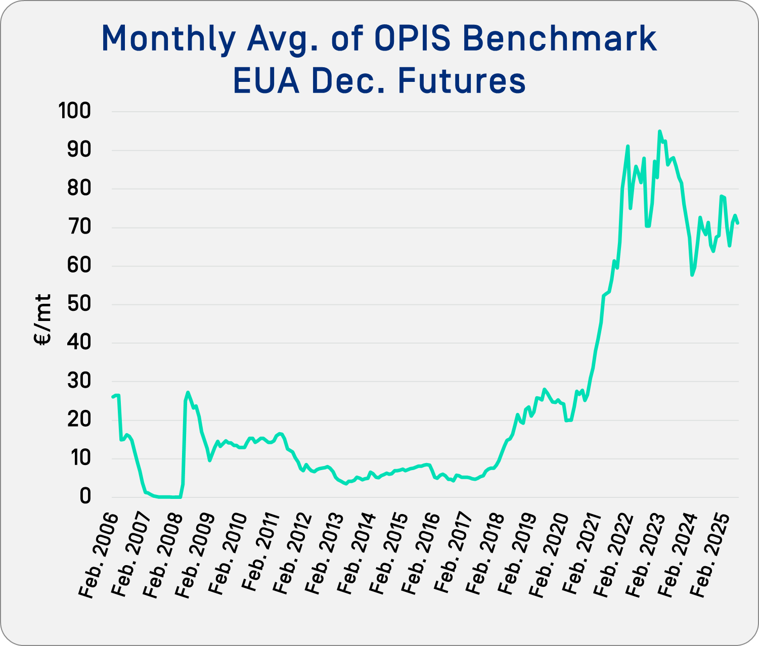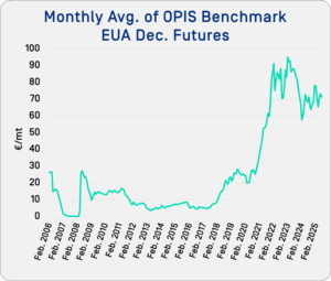 In essence, the less carbon you emit, the lower your carbon cost. The price of EUAs is a market-based incentive; EUAs have reached as high as €101.95/mt ($119.23) in August 2022.