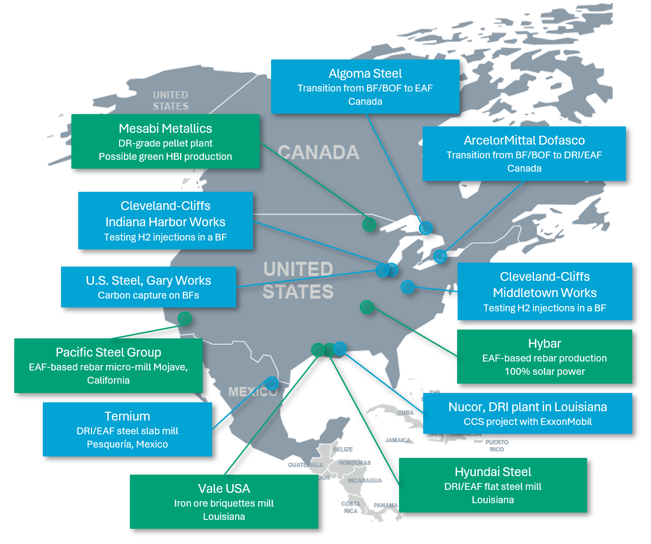 The North and South American steel industry reflects a diverse array of decarbonization trends, as the countries have different macroeconomic environment, dominant steelmaking technologies, and national priorities.