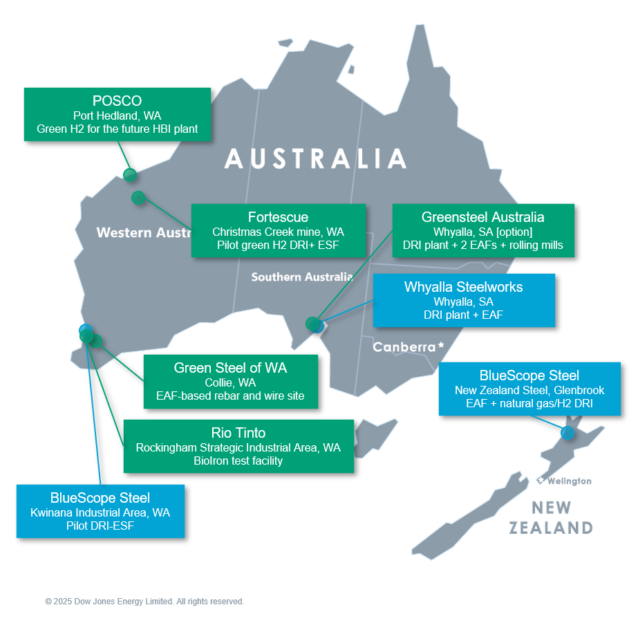 South Australia is also aiming to advance its green projects to match its western neighbour. In February 2025, the South Australian government placed Whyalla Steelworks, a BF/BOF steel producer, into administration. That same month, it announced US$1.5 billion in government funding to replace the steelworks’ existing BF/BOF operations with a 1.8 mtpa DRI plant and a 1.5 mtpa EAF facility.