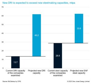Three major projects alone—the DRI/HBI production complex in Benghazi by Tosyalı and Libya United Steel Company for Iron and Steel Industry, the new DRI/HBI plant in Misrata by Libyan Iron and Steel Company and Danieli, and the DRI plant in Oman by Kobe Steel and Mitsui—could add more than 15 mtpa of DRI/HBI production, much of which would go to Europe.