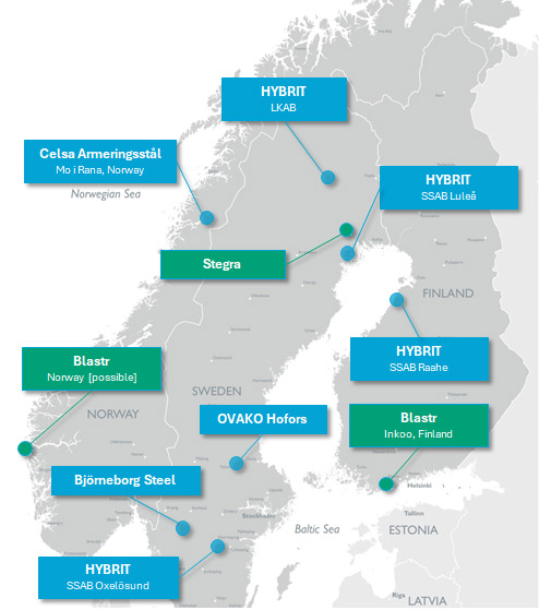 Take Sweden, for example, which hosts two of the three largest projects in the Nordic region—Stegra and HYBRIT. They include a complete production chain from green hydrogen electrolysis to the H2-DRI/HBI plant, the EAF steel smelter, and new rolling mills. The projects rely on non-fossil sources of electricity, such as wind, hydro or nuclear, and on green hydrogen. And this makes sense since Sweden is the largest producer of iron ore and pellets in the EU and generates almost all of its electricity from clean sources, producing about 20% more power than it consumes, especially in the north, where large green steel projects are concentrated.