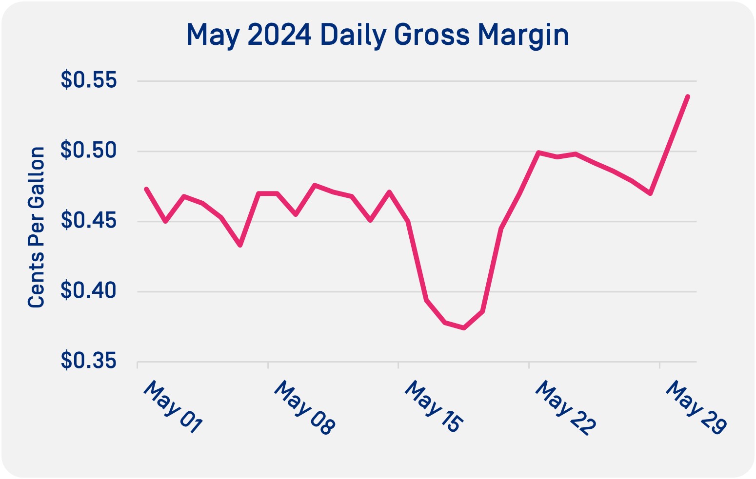 With May 2024 priced several cents higher than May 2023, big box retailers and some chains used it as an opportunity to become more aggressive on street price.
