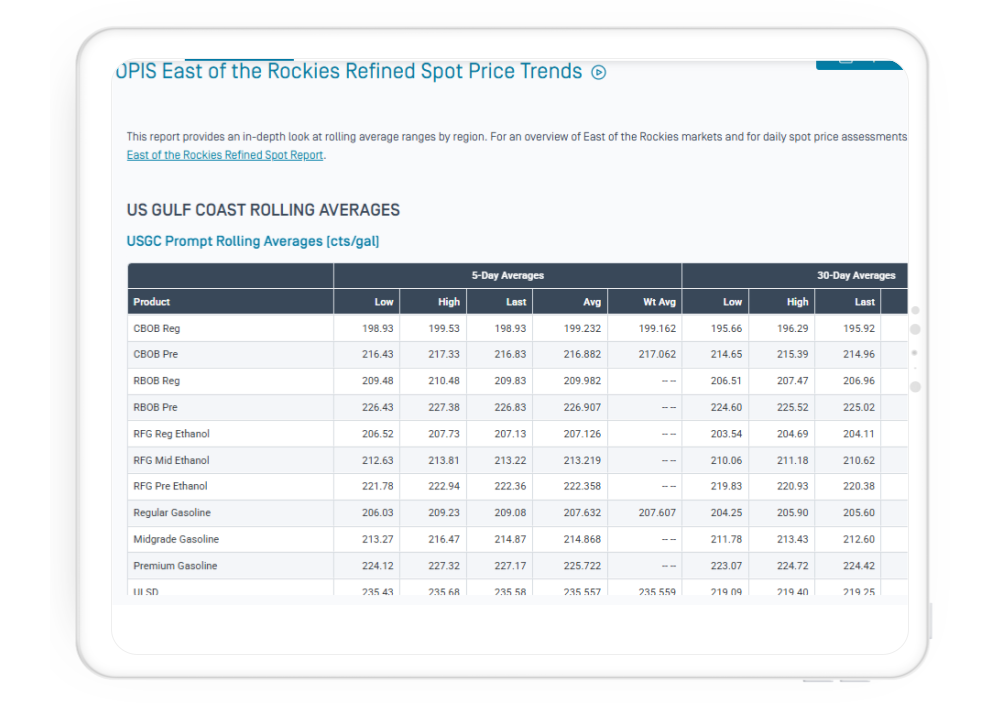 The report is published daily and is available on the OPIS Context platform, by email, FTP or API. Viewing the report on OPIS Context lets you customize your view so you can easily see just the prices and information you care most about. Plus, you can access historical data, news, report archives and more from your desktop or mobile web browser.