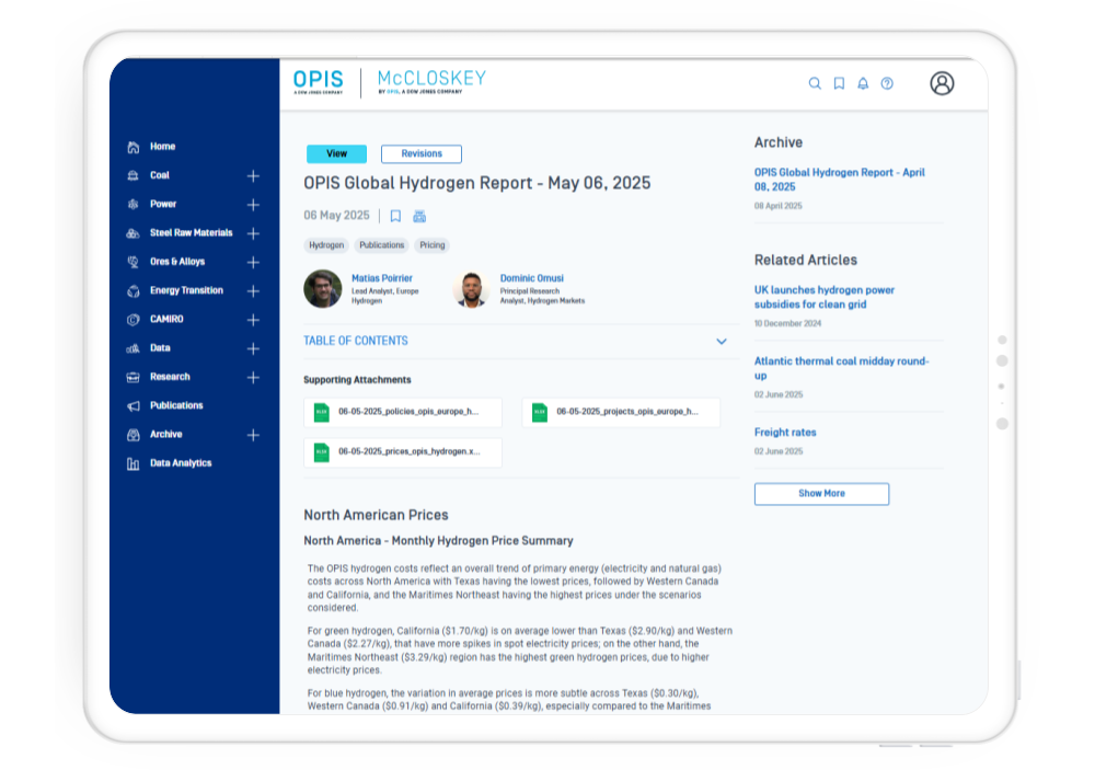 Sign up to receive copies of the OPIS Global Hydrogen Report for free. Receive an Excel report in your inbox on the first Tuesday of every month (Price Report and Projects & Policy Tracker).