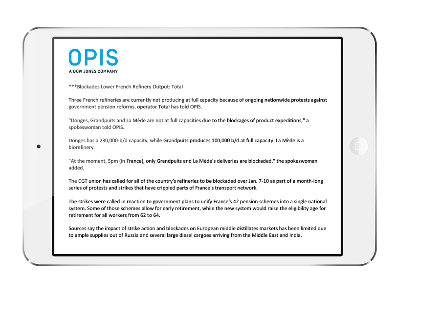 If there is a refinery problem, pipeline outage, regulatory update or any other event influencing downstream fuel distribution, you’ll learn about it immediately from OPIS Intraday News Alerts. View the Intraday News Alerts fact sheet to learn more details about the service.