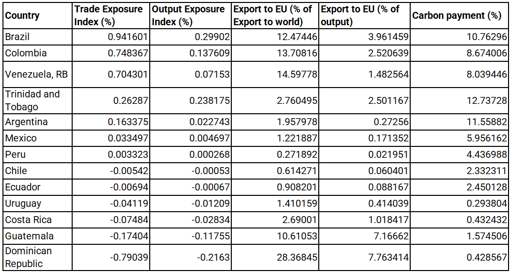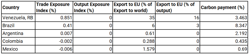 This analysis uses these indexes, focusing on three key variables, to assess CBAM’s impact on Latin American countries across different sectors:
