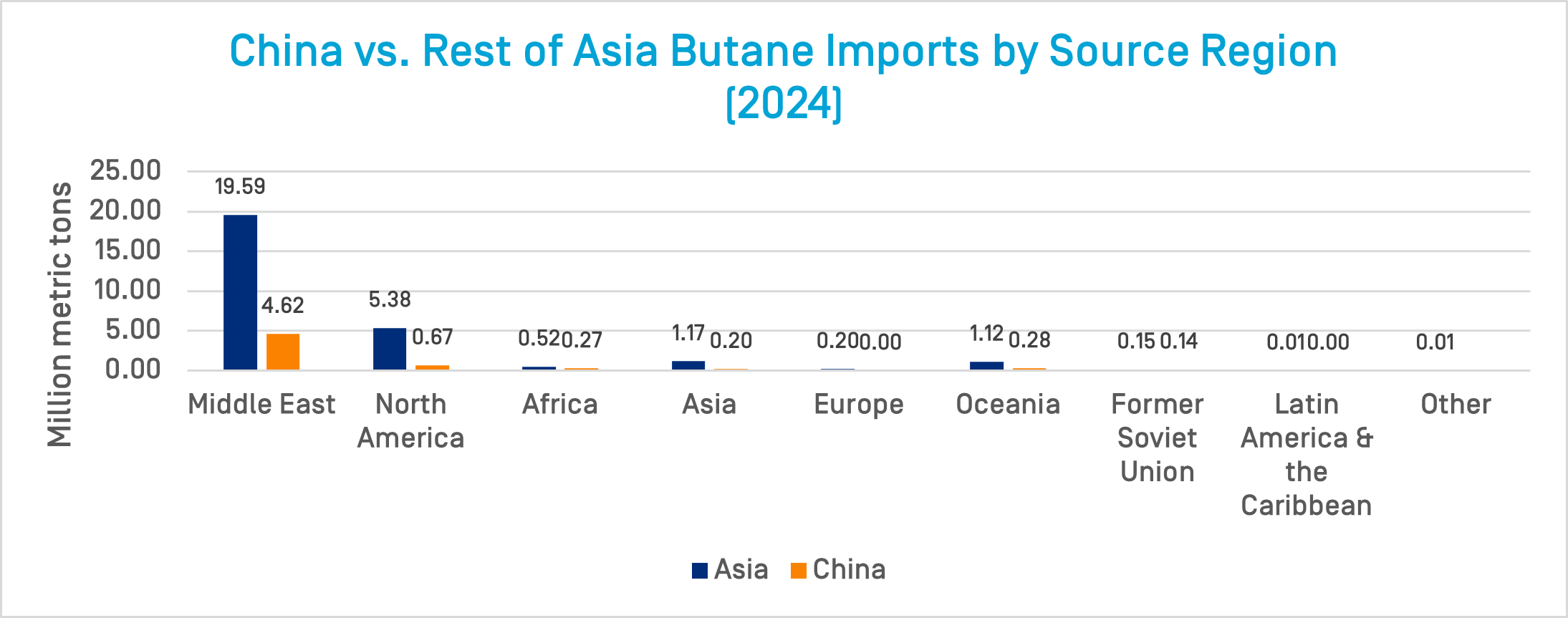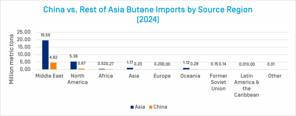 China’s ability to fully pivot to Middle Eastern supply remains limited. Most Middle Eastern exports are propane-butane mixes, which are better aligned with demand in India and Southeast Asia. If China were to increase its intake from the Middle East, it could disrupt the regional balance, either by leaving excess butane without a destination or by displacing mixed cargoes from markets that rely on them.