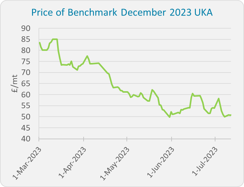 The day the reforms were announced, utilities bought into the hype, causing the benchmark ICE December 2023 UKA to rise by nearly 17% during intraday trading to £63.51 ($82.11) per metric ton.