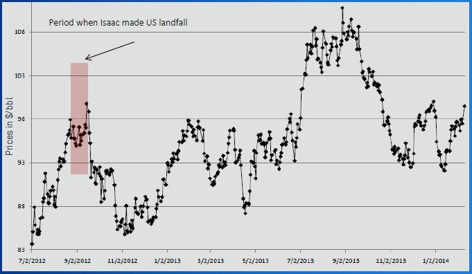 Sometimes the market “prices in” so-called fundamental factors. For example, if the U.S. government is expected to show crude stock supplies falling by a large amount, the market might slowly crawl higher in advance of the weekly inventory report as opposed to rallying sharply when expectations prove true. On the other hand, a quickly developing weather event can lead to immediate price swings.