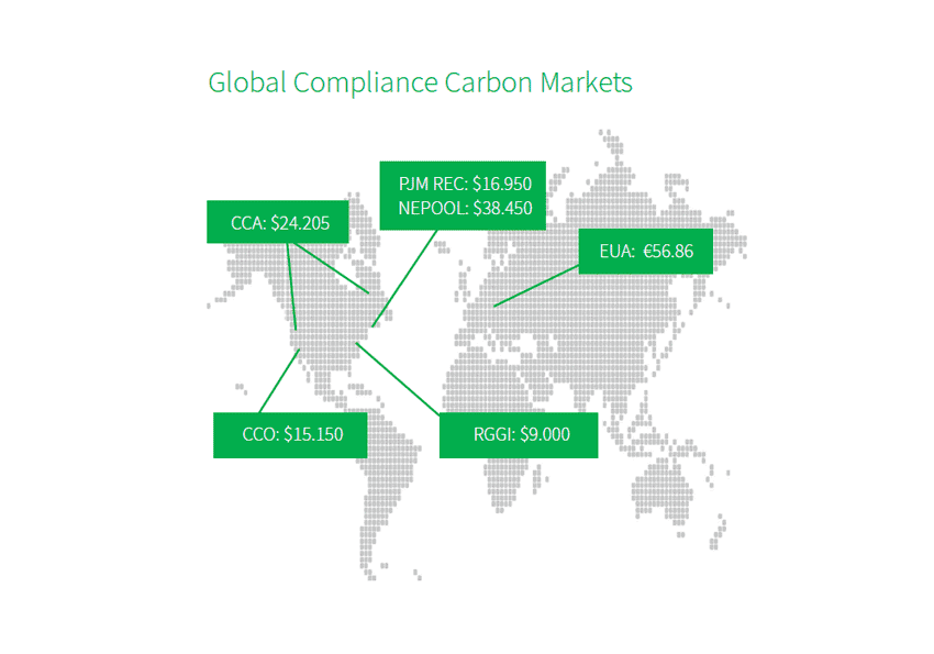 • Carbon trade information that provides a summary of confirmed transactions for key compliance carbon markets.